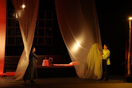 Aktyorlar ijrosi so‘z bilan emas, qalb bilan gapirdi. Har bir harakat, har bir nigoh, har bir ohang jonli ijro orqali sahnaga ko‘chib, tomoshabinning yuragiga yo‘l topdi. Sahna uzra yoqilgan shamlar, mehr bilan qo‘yilgan chiroqlar muhabbatning sokin va iztirobli ohangini yanada chuqurlashtirdi.