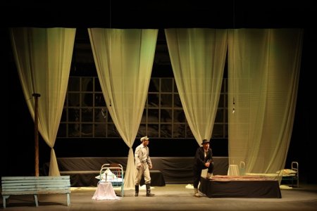 Bul kún teatr saxnası ápiwayı saxna emes, muhabbat, saǵınısh hám sadıqlıq jırlanǵan muqaddes orınǵa aylandı. Spektakl avtorı M.Nızanov, inscenirovka avtorı I.Eshniyazov, saxnalastırıwshı rejissyor M.Reymov bolǵan bul spektakl tamashagóydi dáslepki minutlardan-aq óz qushaǵına tarttı.