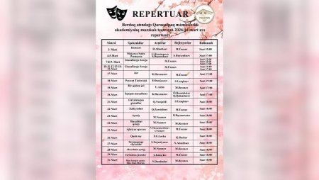 #REPERTUAR🎭Berdaq atındaǵı Qaraqalpaq mámleketlik akademiyalıq muzıkalı teatrınıń 2026-jıl mart ayı repertuarı.